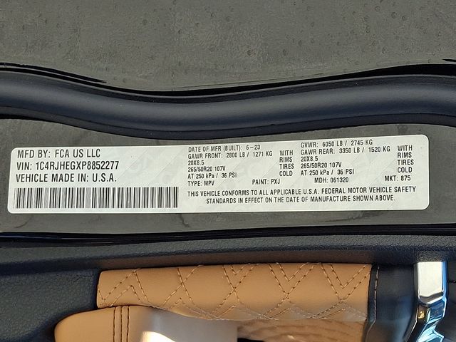 4D Sport Utility, 4WD, Diamond Black Crystal Pearlcoat, Tupelo/Black w/Nappa Leather Seats, 2nd-Row Manual Window Shades, Adaptive suspension, Auto High-beam Headlights, Auto-dimming Rear-View mirror, Auto-leveling suspension, Automatic temperature control, Delay-off headlights, Front dual zone A/C, Fully automatic headlights, Heads-Up Display, Heated front seats, Heated rear seats, Heated steering wheel, Leather steering wheel, Memory seat, Navigation System, Power Liftgate, Power moonroof, Rain sensing wipers, Rear dual zone A/C, Steering wheel memory, Steering wheel mounted audio controls, Ventilated front seats, Wireless Charging Pad.