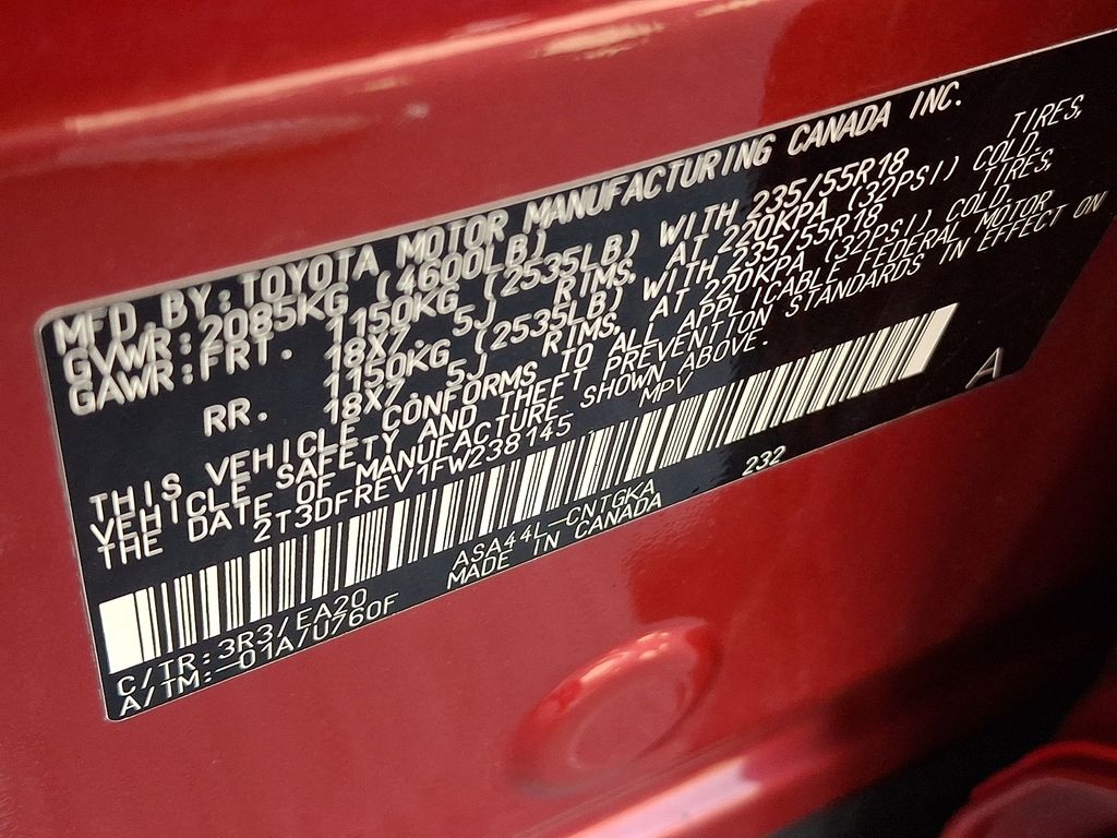 2015 Toyota RAV4 Limited AWD, Black Premium Synthetic. 4D Sport Utility